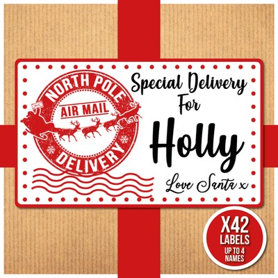 North Pole Shipping Labels Template - Gifts by SIMONEmadeit How it Works 1. INSTANT DOWNLOAD Instantly download this printable North Pole Shipping Labels from Santa template immediately after your payment has been processed. 2. PERSONALIZE AT HOME Open the template in the FREE Adobe Reader on your laptop or computer and simply start typing over my sample text. North Pole Special Delivery Printable {from Santa} Personalized Santa labels start the Pure Christmas Magic. These labels feature a signature from Santa Claus himself. The labels are sure to make children wonder and feel joy. Free printable stamps from the North Pole are an excellent way to send special gifts. If you don't have a stamp machine, use the free printable stamps