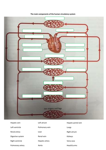 Human Body Overall Circulatory System Labelling Worksheet The circulatory system is the system within our bodies that carries blood vessels through arteries to each major organ, transported by the heart. This system also includes the lungs, which oxygenate the blood. The circulatory system also carries nutrients and hormones to different parts of the body, and helps to filter waste products out.