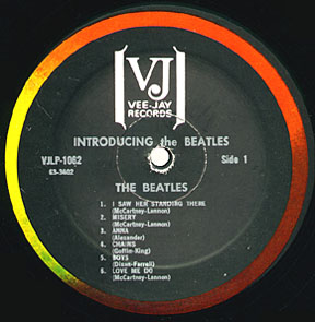 Fake Introducing the Beatles - Archer2000.com The all black label with silver print and brackets logo is by far the most common fake. Ironically, it's the rarest of genuine Vee-Jay LP labels. While this one appears to be a mono version 1 disk (with P.S. I Love You), version 1 mono copies were not pressed with this label style. Additionally, "THE BEATLES" is printed below the spindle hole.