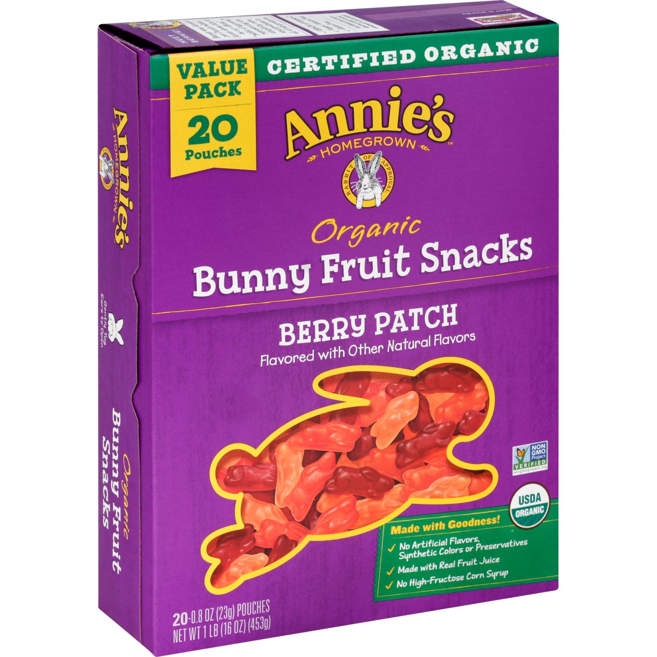 All Fruit Snacks | Organic Fruit | Annie's Homegrown Organic Summer Strawberry Bunny Fruit Snacks. Organic Minis Bunny Fruit Snacks. Organic Berry Patch Bunny Fruit Snacks. Organic Bees, Bugs & Butterflies Fruit Snacks. View All Snacks. Sign-up for Emails from Annie's! * Required Fields. Email Address * Yes, I would like to receive emails from Annie's with recipes or promotions. By clicking ...
