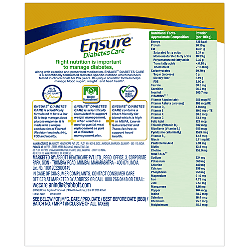 ENSURE DIABETES CARE Diabetic Care Formula - Specialised Nutrition For Diabetes Management, Vanilla, 200 g Box