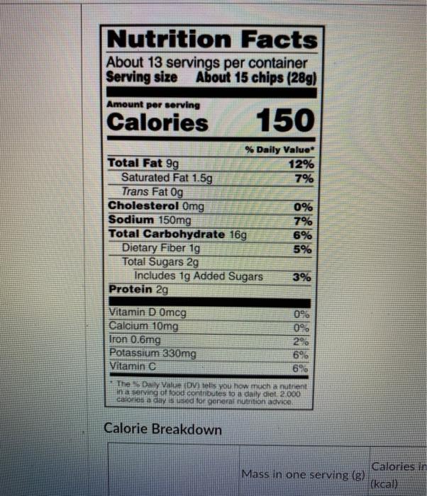 Solved 4. The following nutrition label shows the calories ...