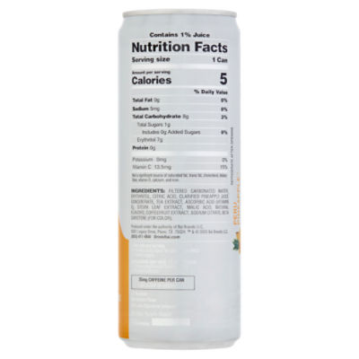 Bai — Antioxidant Infusion Drinks It's a 10-Calorie Revelation. Good Source Vitamin C Get 110mg of caffeine. For when you need to give 110%. It's WonderWater™ Try Bai Real. Refreshing. Flavors. The Flavor Feed Recipes Bai drinks and recipes make the perfect companion for any mood, celebration or occasion (like, say, 5 o'clock). Watermelon Smoothie Summer Shaved Ice Recipes Bai Puna Coconut Pineapple Antioxidant Infusion Beverage Bai Puna Coconut Pineapple Antioxidant Infusion Beverage . 18 oz btl . Quick Facts . Gluten-free Kosher . Nutrition . 10 . Calories --Sat Fat 65 mg. Sodium 1 g. Sugars Nutrition Facts . servings per container . Serving Size 1.0 bottle Amount per serving Calories 10 % Daily Value* Total Fat 0 ... Amazon.com: bai pineapple coconut Bai Coconut Flavored Water Puna Coconut Pineapple, Antioxidant Infused, Coconut Pineapple Flavored Water Drink, 18 Fluid Ounce Bottles, 6 Count 18 Fl Oz (Pack of 6) 4.8 out of 5 stars 20,159 Peru Pineapple Sparkling Water - Bai Antioxidant Drinks Nutrition Facts Serving Size 11.5 fl. oz. (340 ml.) Servings Per Container About 1 Amount Per Serving % of Daily Value Calories 5 0% Sodium 5mg 0% Total Carbohydrate 8g 3% Sugars 1g Erythritol 7g Protein 0g Vitamin C 15% Not a significant source of saturated fat, trans fat, cholesterol, dietary fiber, vitamin D, calcium, and iron. 15mg Vitamin C