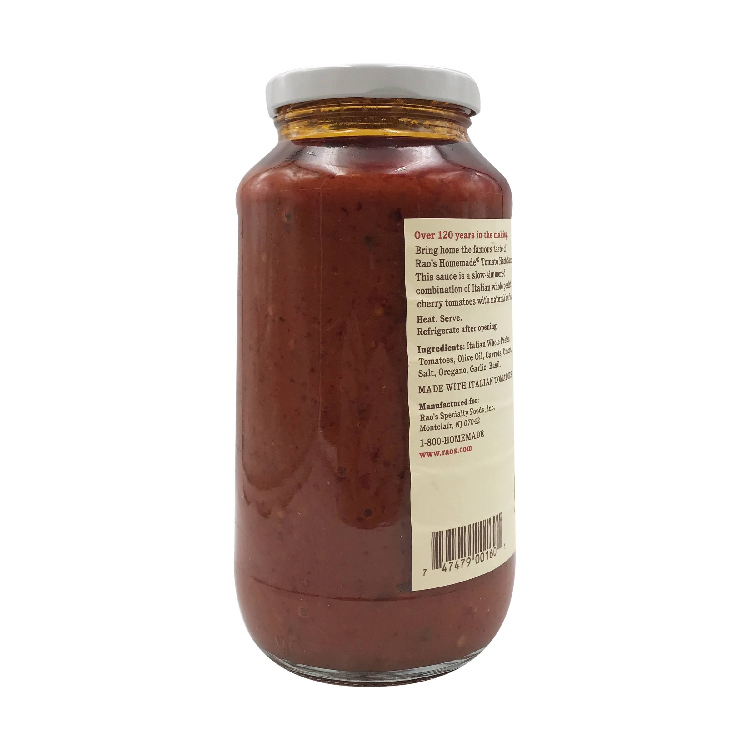 Rao's Homemade Marinara Sauce, 24 oz, All Purpose Tomato Sauce, Pasta ... Rao's Homemade Marinara Sauce is a premium, carb conscious marinara sauce made with only the finest ingredients. Delicious speaks for itself when enjoying this marinara sauce. Each batch of Rao's Homemade Marinara Sauce is slow-cooked in small batches with high quality ingredients.