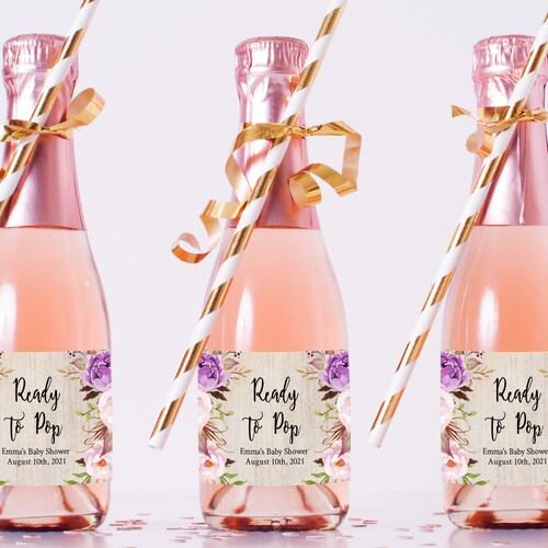 Mini Sparkling Wine Bottle Labels by LoveAtEverySight- Custom Mini Champagne Labels, Baby Shower Favors, Adorable Floral Theme