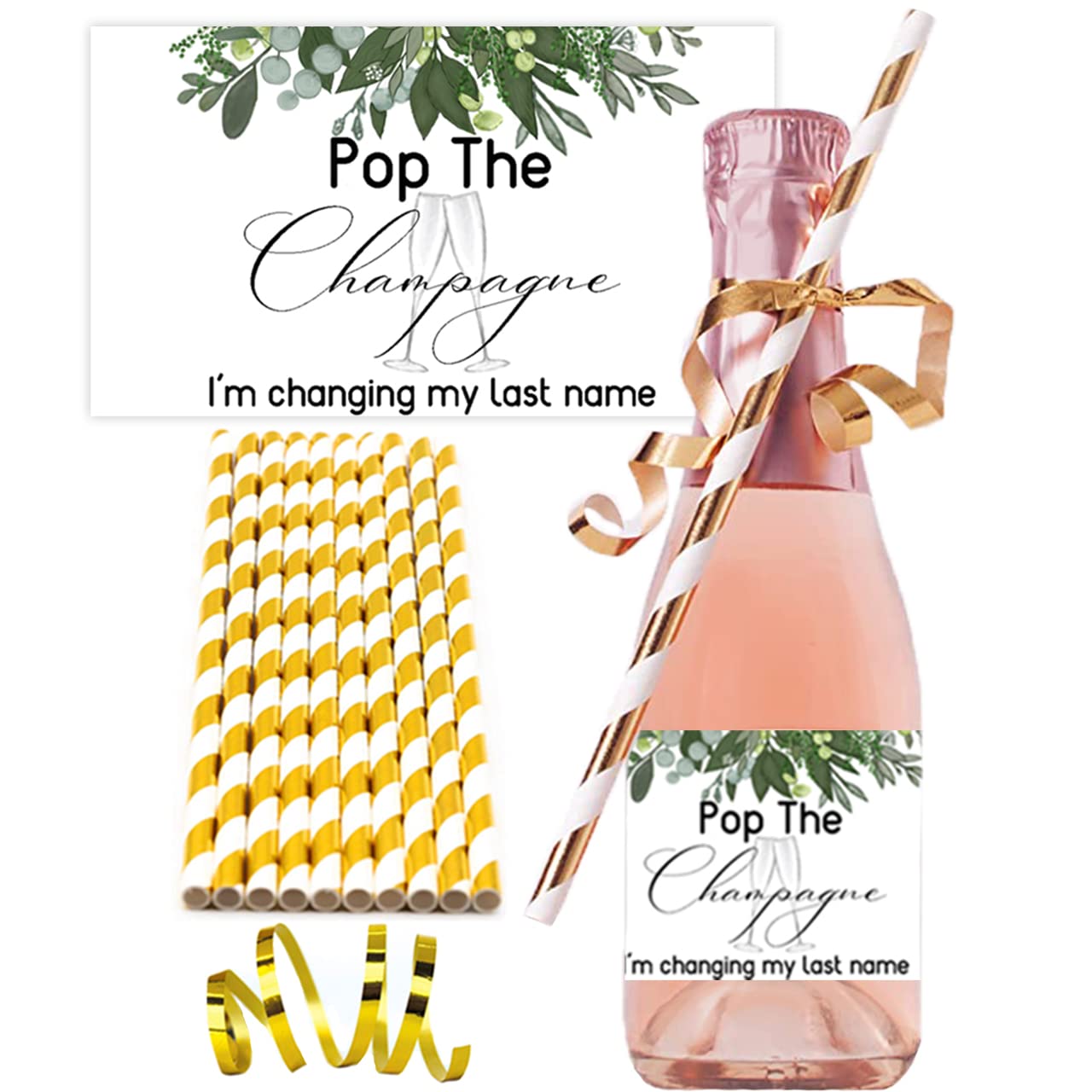 Bachelorette Party Gift Labels for Mini Champagne Bottle with Straws ● Bridal Shower Gift ● Will You be My Bridesmaid ● Pop The● Set of 10 Greenery ● ...