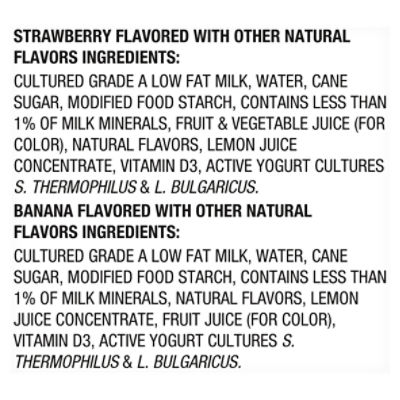YOGURT DANIMALS STRAWBERRY-BANANA NONFAT Nutrition ... YOGURT DANIMALS STRAWBERRY-BANANA NONFAT. YOGURT DANIMALS STRAWBERRY-BANANA NONFAT. Product Last Saved Date:29 November 2017. Nutrition Facts. Serving Size:. Nutrition Facts for Dannon Danimals Strawberry Explosion Smoothie ... Nutrition Facts ; Fat 0.0% ; Carbs 84.6% ; Protein 15.4% ... Strawberry Kids Smoothie - Danimals DANIMALS STRAWBERRY FLAVOR SMOOTHIE ; Sodium, 30mg, 1% ; Total Carbs, 11g, 4% ; Dietary Fiber, 0g, 0% ; Total Sugars, 9g.