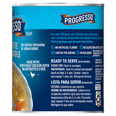 Traditional Chicken Noodle | Canned Soup | Progresso WebContains Less Than 2% Of: Corn Protein (Hydrolyzed), Water, Salt, Xanthan Gum, Modified Food Starch, Potassium Chloride, Egg White, Onion Powder, Sugar, Soy Protein Isolate, Tomato Extract, Sodium Phosphate, Chicken … Organic Chicken Noodle | Canned Soup | Progresso Web30mg 2%. Iron. 0.4mg 2%. 0.6mg 4%. Potassium. 180mg 4%. 290mg 6%. * The % Daily Value (DV) tells you how much a nutrient in a serving of food … Progresso Chicken Noodle Soup: calories, nutrition … WebProgresso Chicken Noodle Soup nutrition grade N/A 90 Calories Per Serving 2 comments Rating: 2.50 with 4 ratings 2 followers Explanations Keto: net carbs 12g If you are following a ketogenic diet (keto), you need … Calories in Progresso Chicken Noodle Soup - Nutritionix Progresso Chicken Noodle Soup Nutrition Facts Serving Size: bowl (2 cups) (496ggrams) Chicken Noodle Soup Amount Per Serving Calories119 % Daily Value* Total Fat3.8ggrams5% Daily Value Saturated Fat1ggrams5% Daily Value TransFat0ggrams Polyunsaturated Fat0.8ggrams Monounsaturated Fat1.3ggrams
