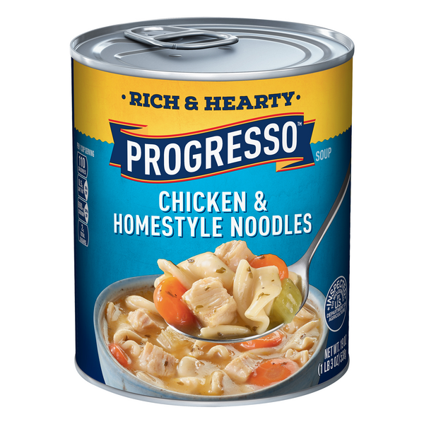 Progresso chicken noodle soup nutrition. Traditional Chicken Noodle | Canned Soup | Progresso Contains: egg, soy, wheat Low Fat No Artificial Flavors No Colors From Artificial Sources Made with White Meat Chicken with No Antibiotics Ever 70 Cals per Serving Ingredients Contains: egg, soy, wheat Nutrition Facts 2 servings per container Serving Size 1 cup (244g) Ingredients, nutrition facts, and allergen statements can change. Progresso Soup Calories and Nutrition Information. Page 1 Progresso Soup Calories and Nutrition Information. Page 1 Progresso Soup Browse a list of all products from Progresso Soup What are Nutritionix Track app users eating from Progresso Soup ? Traditional Chicken Noodle | Canned Soup | Progresso Contains: egg, soy, wheat Low Fat No Artificial Flavors No Colors From Artificial Sources Made with White Meat Chicken with No Antibiotics Ever 110 Cals per Serving Ingredients Contains: egg, soy, wheat Nutrition Facts 2 servings per container Serving Size 1 cup (242g) Ingredients, nutrition facts, and allergen statements can change. Calories in Progresso Traditional Chicken Noodle Soup and ... Jun 7, 2022 · Progresso Traditional Chicken Noodle Soup Nutrition Facts Serving Size 1 cup (242 g) Amount Per Serving Calories 100 % Daily Values* Total Fat 2.50g 3% Saturated Fat 1.000g 5% Trans Fat 0.000g Polyunsaturated Fat 0.000g Monounsaturated Fat 1.000g Cholesterol 25mg 8% Sodium 680mg 30% Total Carbohydrate 13.00g 5% Dietary Fiber 1.0g 4% Sugars 1.00g